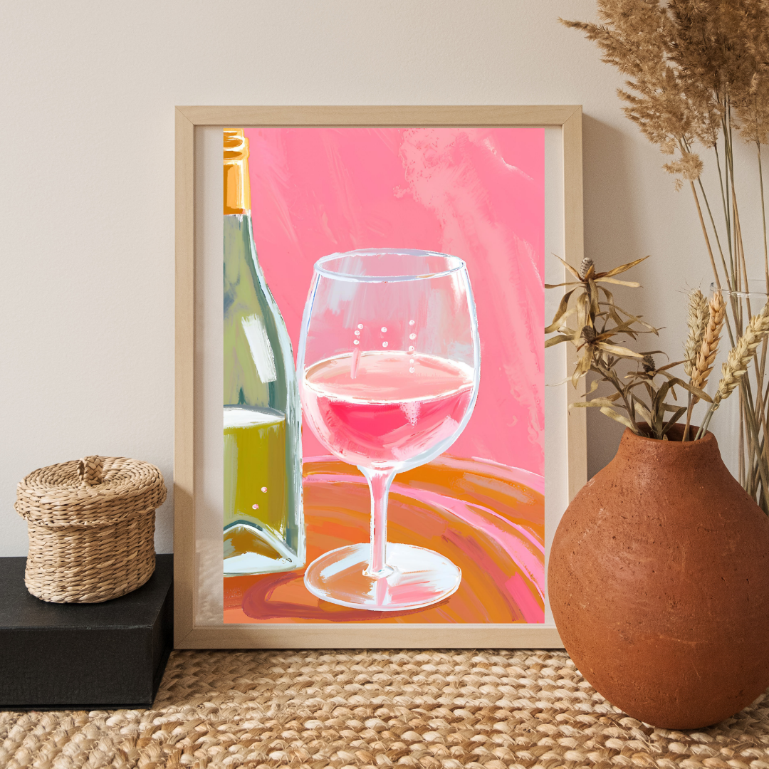 Celebrate endless summer days with our Rosé All Day Wine art print! Featuring a bright glass of rosé on a pink background, this instant download is perfect for wine lovers and chic kitchen decor. No physical item will be shipped. Colors may vary slightly depending on monitor and printer settings.
